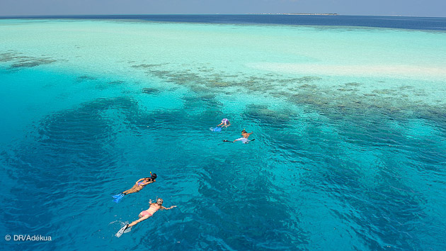 En quelques plongées, la sensation d'être le témoin d'une richesse exceptionnelle avec des rencontres tout simplement magiques nous transporte dans une autre dimension. Les récifs coralliens bouillonnent littéralement de vie, les bancs de poissons occupent chaque recoin... Les raies pastenagues patrouilles ici et là, tandis que les mantas tournent au-dessus des stations de nettoyage. Les requins sont présents quasiment à chaque plongée, avec un rendez-vous incontournable avec le plus grand poisson du monde, le requin baleine. Bref le spectacle se trouve à chaque coin de récif aux Maldives !