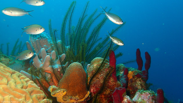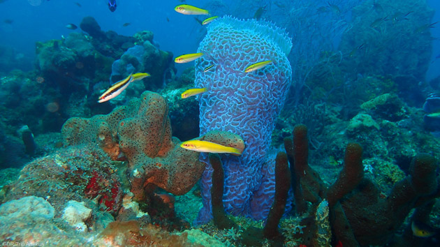 Les fonds sous-marins de La Dominique sont vraiment bien préservés, plus qu'en Guadeloupe ou en Martinique. Ici, les éponges barriques sont impressionnantes et tapissent les fonds un peu partout. Les coraux durs sont encore très sains et très colorés.