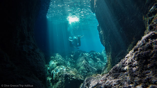 Téléportation : La péninsule de Kassandra en Chalcidique (Grèce) est une destination plongée atypique. Au pied de forêts de pins classées Natura 2000, on y plonge sur une multitude de sites avec départ du bord. Dans ces eaux chaudes et translucides, on part à la rencontre de la riche faune méditerranéenne et de paysages sous-marins variés parmi lesquels tombants, grottes, tunnels, et herbiers de posidonie vous transporteront dans une ambiance exceptionnelle ! On y observe la faune typique de la Méditerranée : mérous, poulpes, murènes, sars, rougets, petits thons… Avec une visibilité excellente ! N'attendez plus pour réserver votre séjour en Grèce.