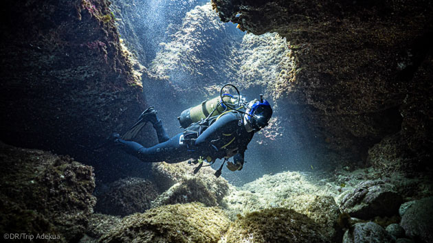 La densité de vie y est incroyable, le tout dans une eau d’une clarté exceptionnelle ; jusqu’à 30 mètres ! On y découvre des structures rocheuses de toute beauté, entre arches, grottes, tunnels, et labyrinthes.